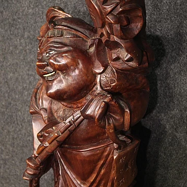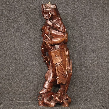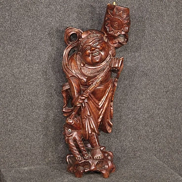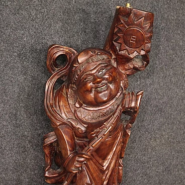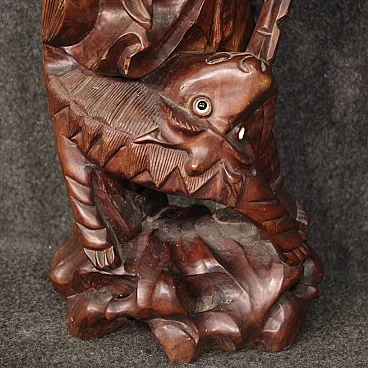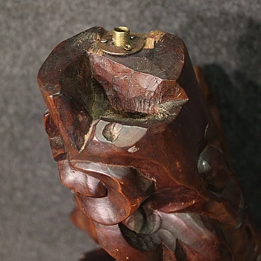 Scultura orientale della metà del '900. Oggetto in legno esotico piacevolmente scolpito e lavorato raffigurante un personaggio con animale alla catena, di buona qualità. Scultura ricavata da un unico blocco ligneo, di buona misura, modificata nel corso del '900 per ricavarne una lampada (vedi foto); mancante di impianto elettrico. Opera finita da centro, per antiquari e arredatori, adornata da numerosi dettaglia. Presenta qualche segno del tempo e piccole sbeccature (vedi foto). Strutturalmente sana, nel complesso in buono stato conservativo.