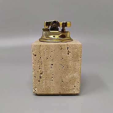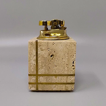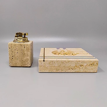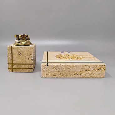 Posacenere e accendino in travertino di Enzo Mari per F.lli Mannelli, anni '70