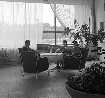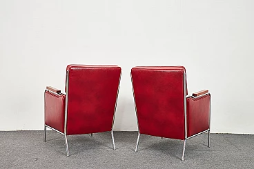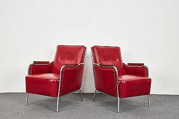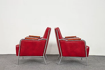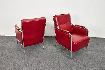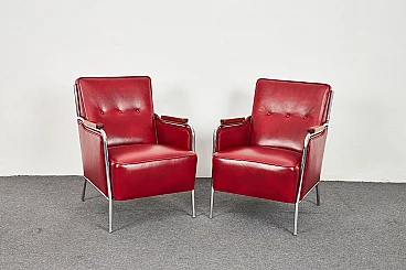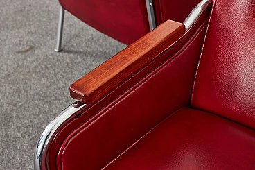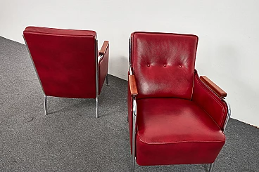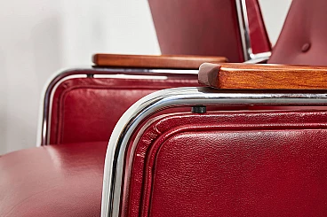 Coppia di poltrone in pelle bordeaux in stile Bauhaus di József Peresztegi, anni '50
