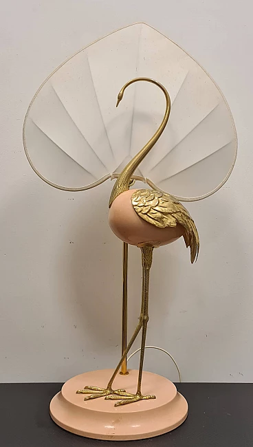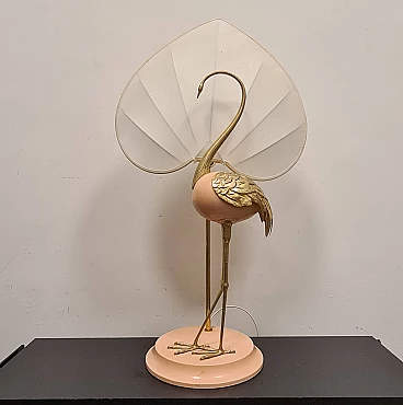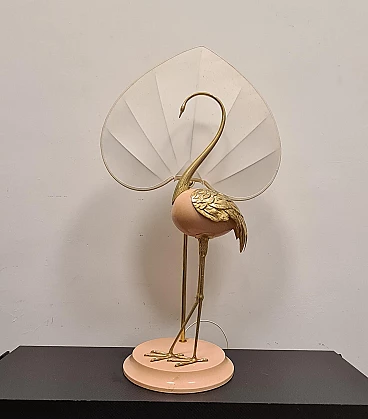 Lampada da tavolo con airone cenerino di Antonio Pavia, anni '70