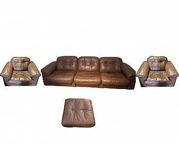 Coppia di poltrone, divano e pouf in pelle di De Sede, anni '60