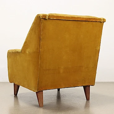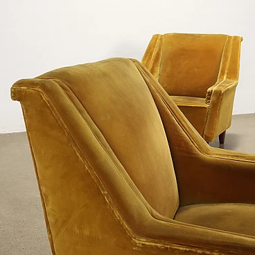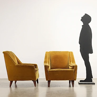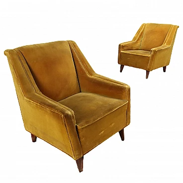 Coppia di poltrone in velluto ocra e gambe di legno, anni '50