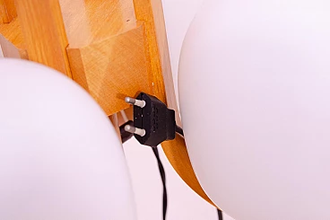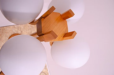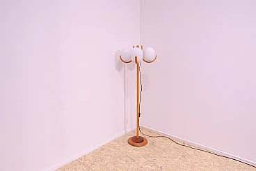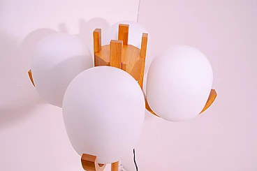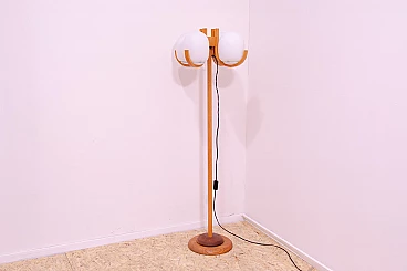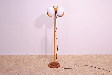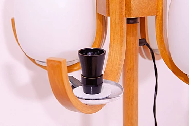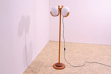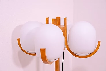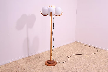Lampada da terra in faggio con diffusori in vetro bianco opaco, anni '70