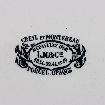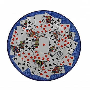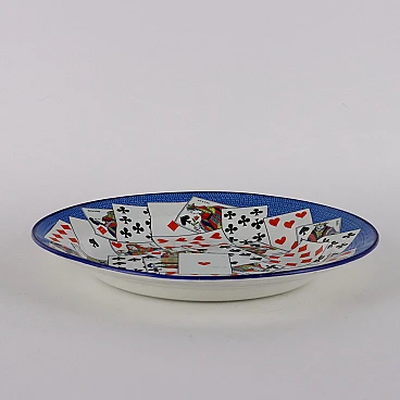 Piatto in porcellana con carte da gioco di Creil et Montereau, fine '800