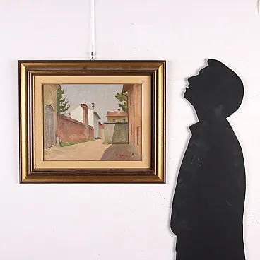 Via di paese. Olio su tela. Firmato e datato in basso a destra.