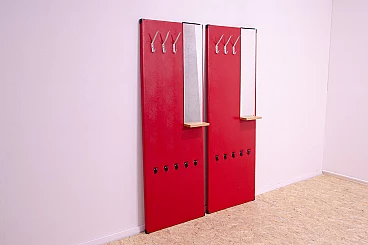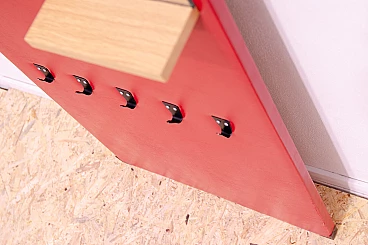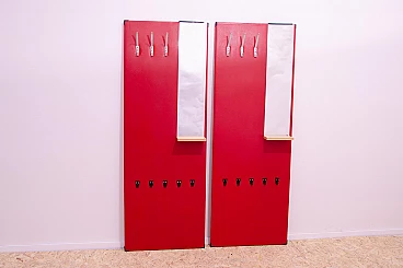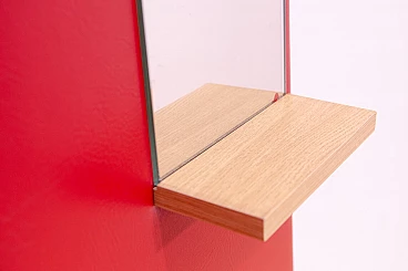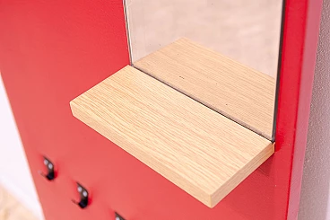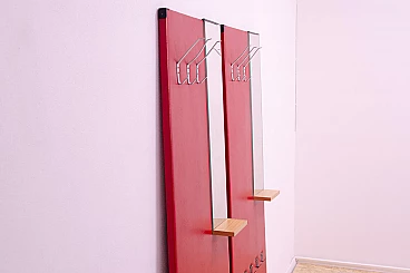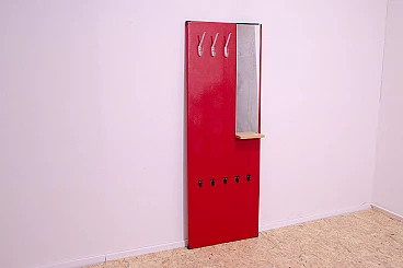 Appendiabiti in similpelle rossa con specchio di Drevotvar, anni '60