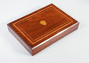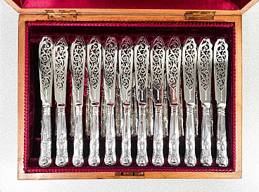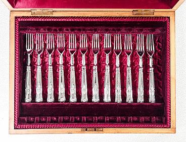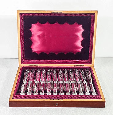 24 Posate da pesce in silverplate con custodia in legno, '800