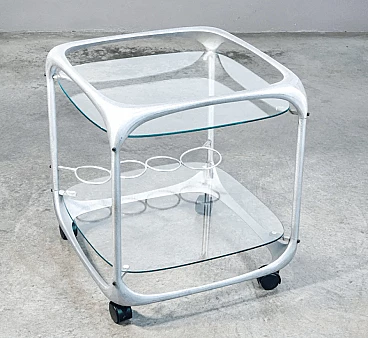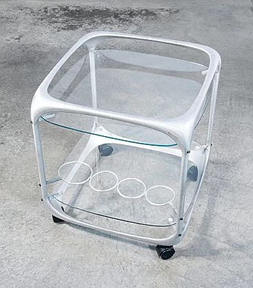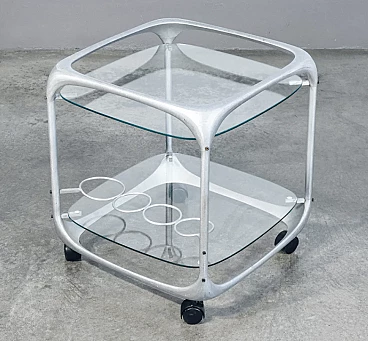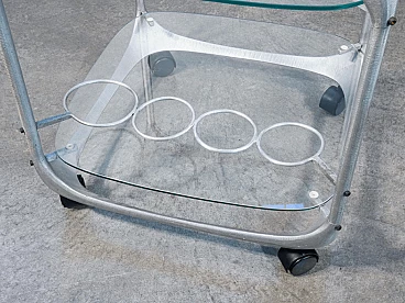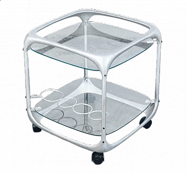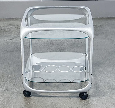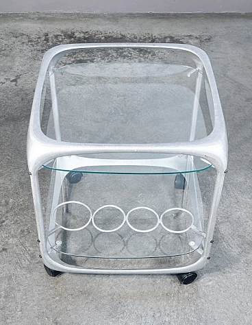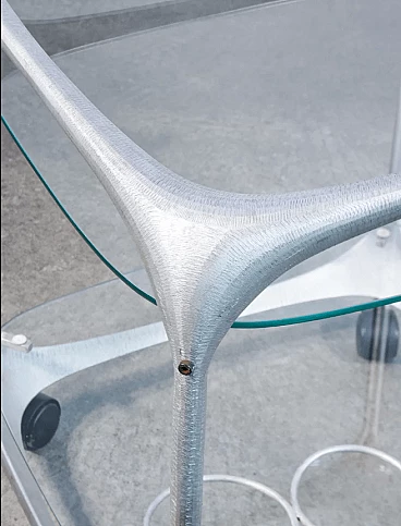 Carrello bar in alluminio e vetro di Renzo Burchiellaro, anni '70