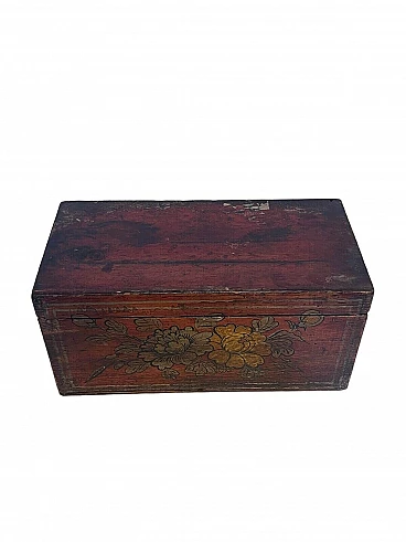Scatola in legno orientale decorata a mano, fine '800