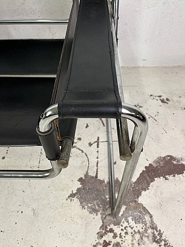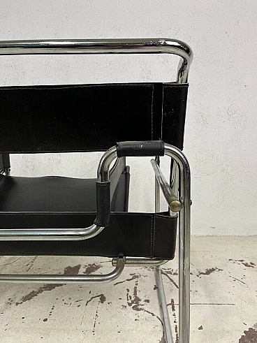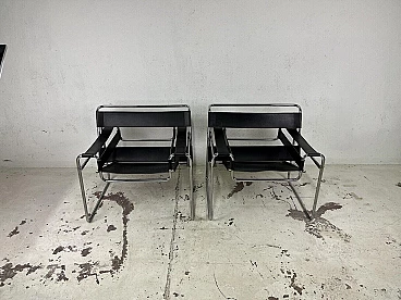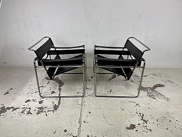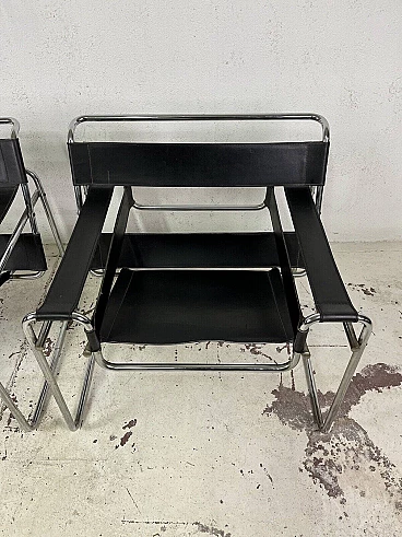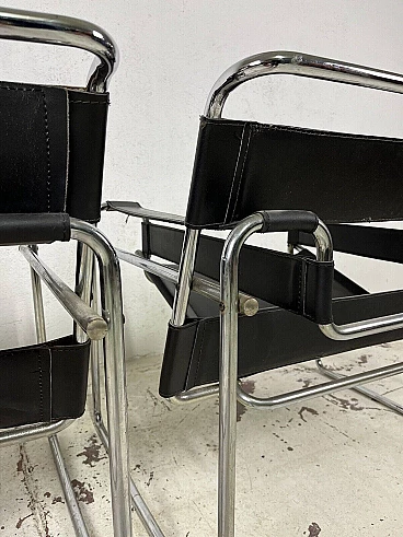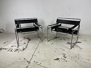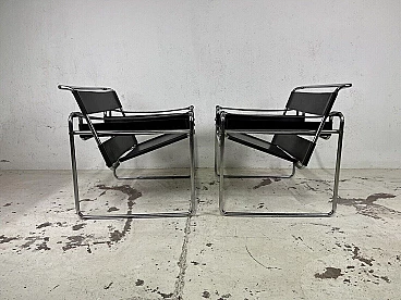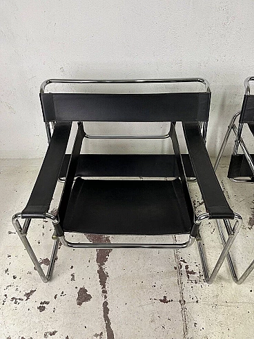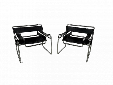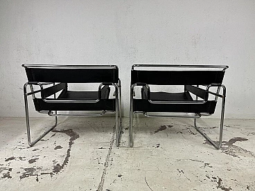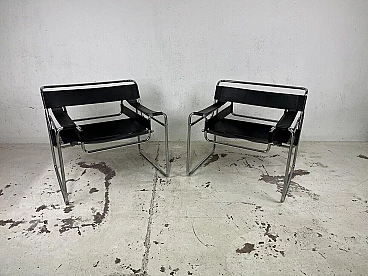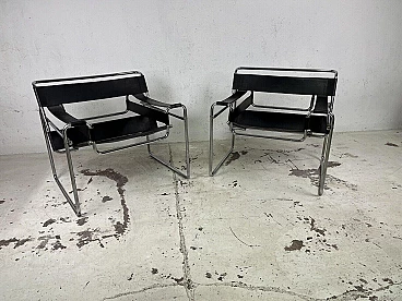 Coppia di poltrone Wassily in metallo cromato e pelle, anni '70