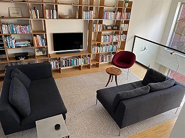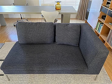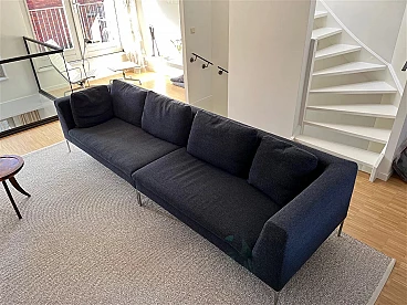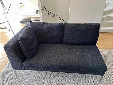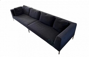 Divano modulare Charles di Antonio Citterio per B&B Italia (modulo CH156LD + modulo CH156LS). Ottimo stato di conservazione. Modello disegnato da Citterio nel 1997 e presentato alla Fiera di Milano nello stesso anno. Costituito da due divani singoli che sono anche collegabili tra loro (i pezzi di collegamento originali sono inclusi). Nessuna macchia né segno di usura. Il rivestimento esterno è realizzato in morbidissimo tessuto materico a rilievo Maxalto blu in lana e cotone, con una bella doppia cromia in double dei filati, chiaro e scuro. Altezza della seduta: 42 cm.