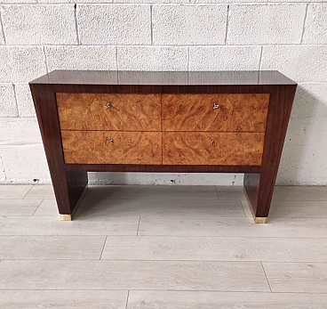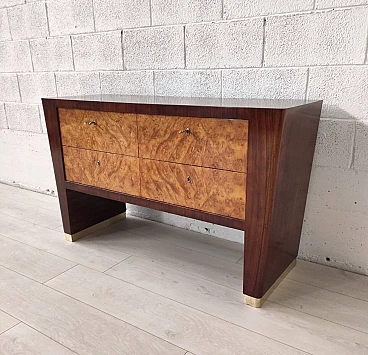 Cassettiera in legno impiallacciato radica di acero, anni '50
