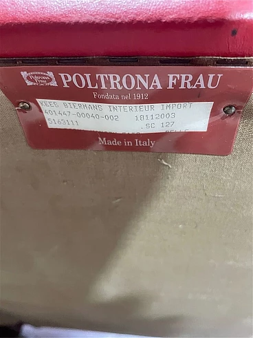 Poltrona Vanity Fair 904 in pelle rossa di Renzo Frau per Poltrona Frau, anni '80-'90. Modello intramontabile. Altissima sartoria e artigianalità realizzativa. La 904 è ancora in produzione dal lontano 1930. In condizioni molto buone con minimi e normali segni. Ha qualche piccolo segno su alcune parti arrotondate e frontalmente sui braccioli. che non ne compromettono la bellezza. Sul cuscino della seduta normali piegature del pellame. Normali e leggeri segni d'uso, punti e graffietti poco visibili. Ufficialmente denominata "modello 904" ma conosciuta dal 1984 come "Vanity Fair", questa seduta è divenuta nel tempo l'emblema stesso di Poltrona Frau. Il progetto, entrato in produzione nel 1930, pare sia stato rielaborato a partire dai disegni lasciati da Renzo Frau alla moglie Savina. Altezza della seduta: 48 cm. Due poltrone disponibili, condizioni simili (prezzo per pezzo).