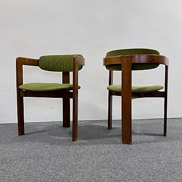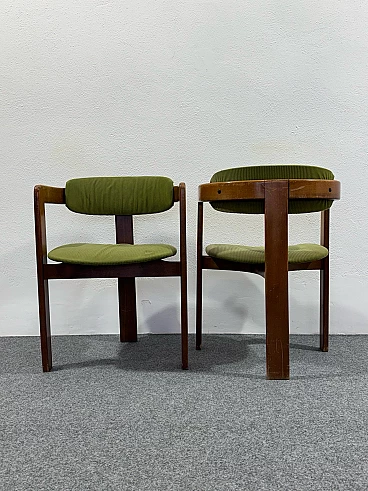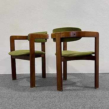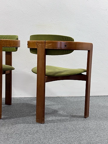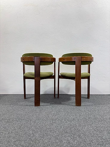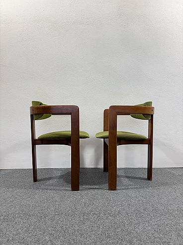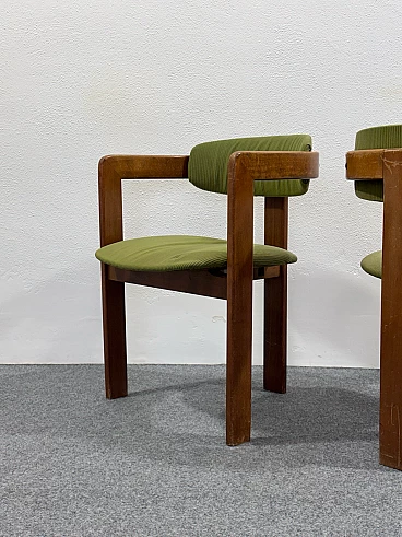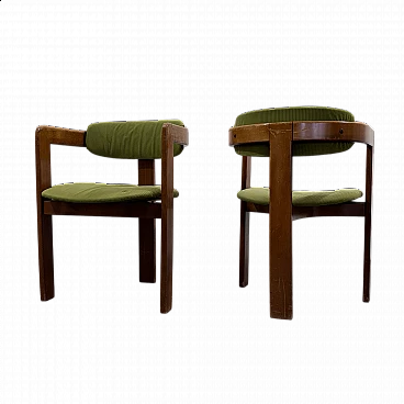 Coppia di poltroncine nello stile del modello Pigreco di Afra e Tobia Scarpa. Struttura interamente in legno e rivestimento in velluto verde. Buone condizioni conservative, non vi è alcun difetto estetico o strutturale da segnalare, solo lievi e ovvi segni del tempo dovuti all'utilizzo e all'età (vedi foto).
