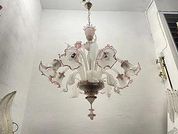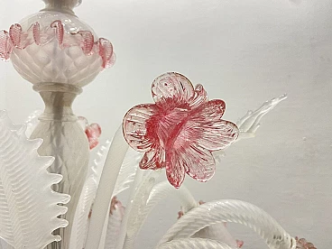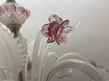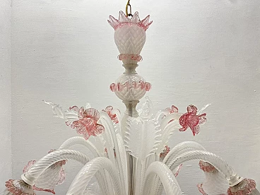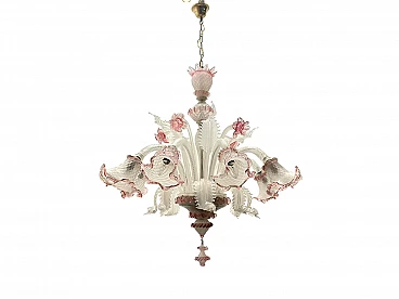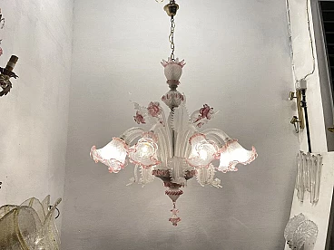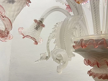 Lampadario in vetro di Murano bianco e rosa, anni '60