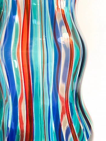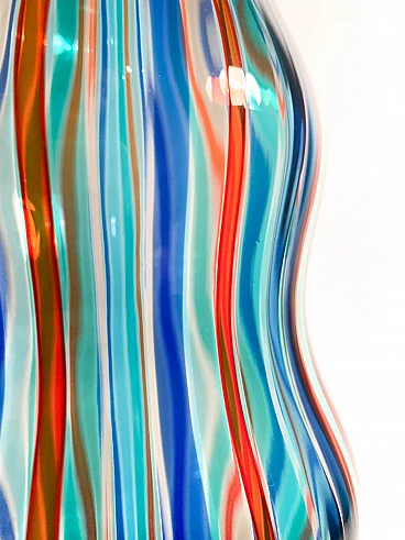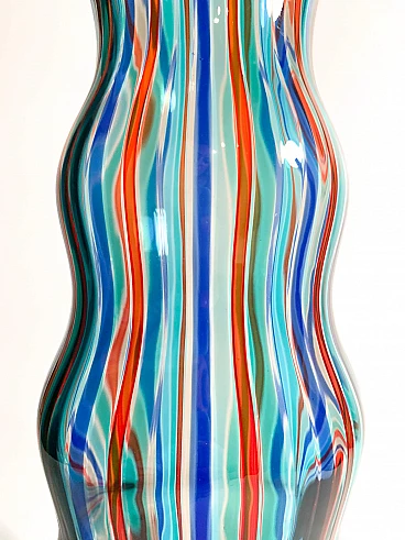 Vaso 'Arado' in vetro di Murano con lavorazione a canna, creato da Alessandro Mendini per Venini nel 1988. Dimensioni Ø 14 cm, h 38 cm. Alessandro Mendini dalla fine degli anni '70 è stato tra gli innovatori del design italiano. Ha lavorato per numerose aziende come Alessi, Venini, Bisazza, Cartier, Hermes, Sumpreme NYC, Swatch, Swarovski e molte altre. Ha ricevuto numerosi riconoscimenti internazionali, tra cui il premio italiano per il design industriale Compasso d'Oro nel 1979; nel 1981 insieme a I study Alchemy e nel 2014 per il lavoro di una vita. Ha diretto molte riviste di architettura tra cui Domus, Casabella e Modo da lui stesso fondate.