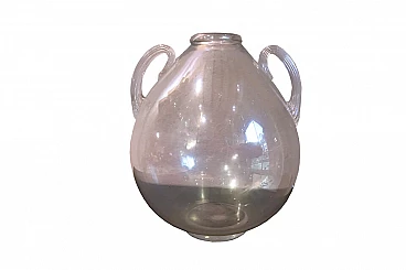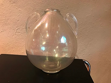 Raro vaso ad anfora disegnato da Flavio Poli per Seguso vetri d'arte, Murano 1940 ca, in vetro soffiato iridato con anse lavorate a strisce e bocca e base applicate.