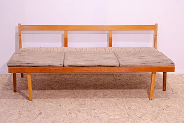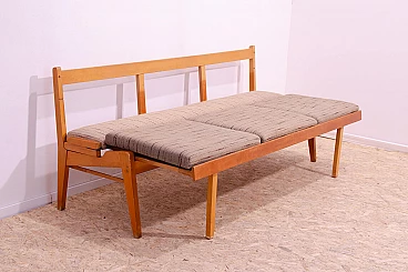 Panca pieghevole cecoslovacca in faggio e tessuto, anni '60