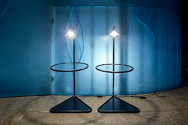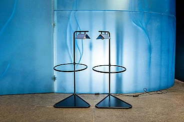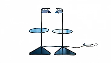 Coppia di comodini regolabili con lampade in metallo e vetro, anni '80