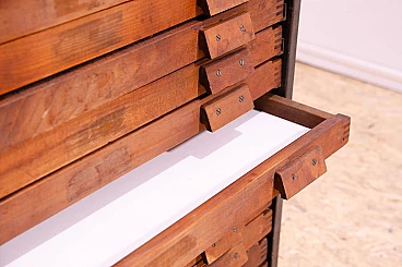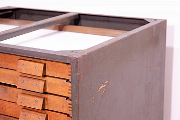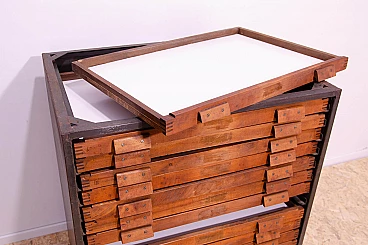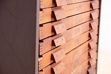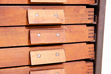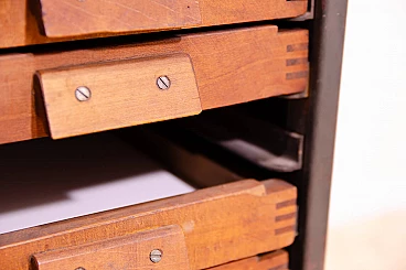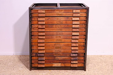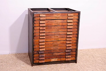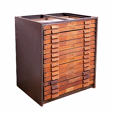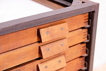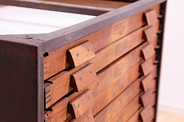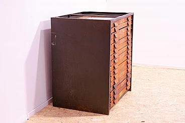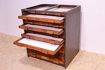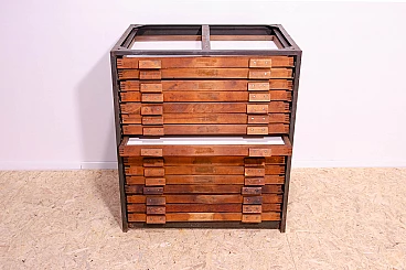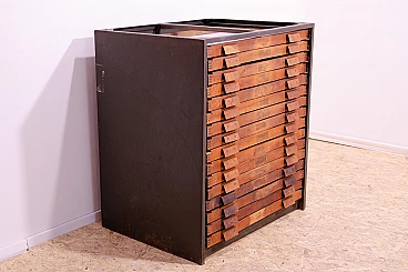 Cassettiera industriale cecoslovacca in legno e ferro, anni '70