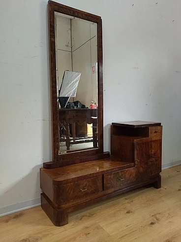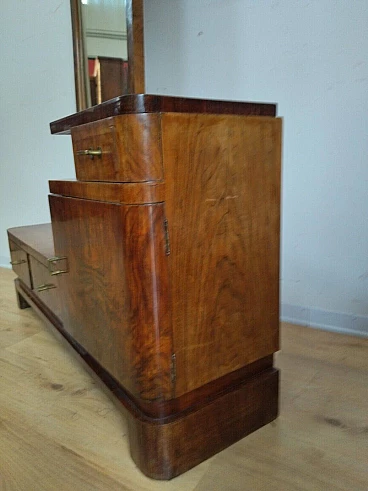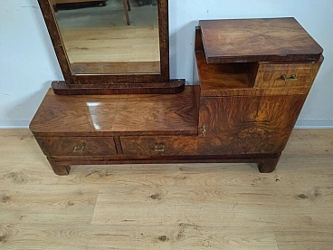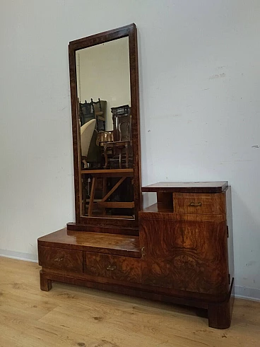 Toilette Art Decò in radica di noce con specchio, anni '40