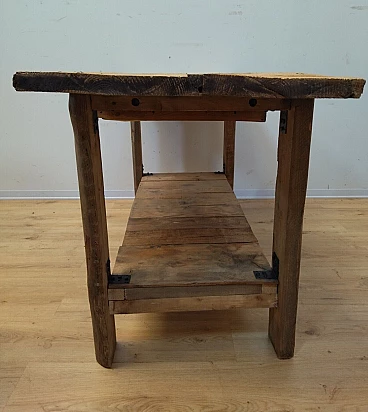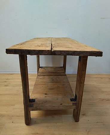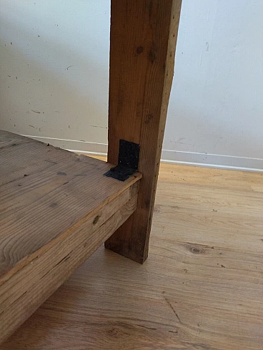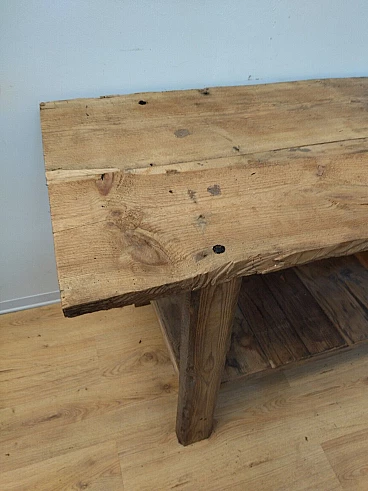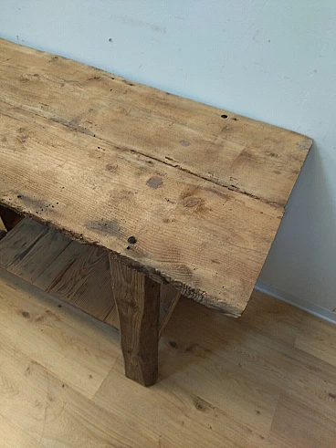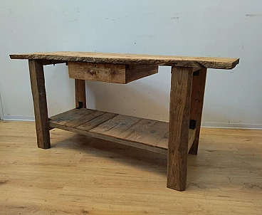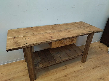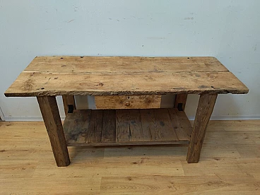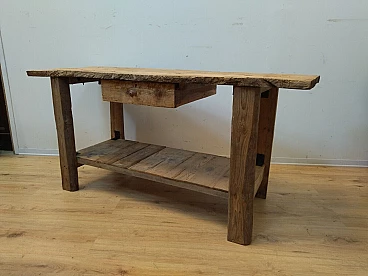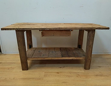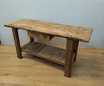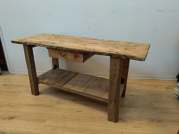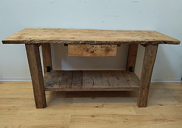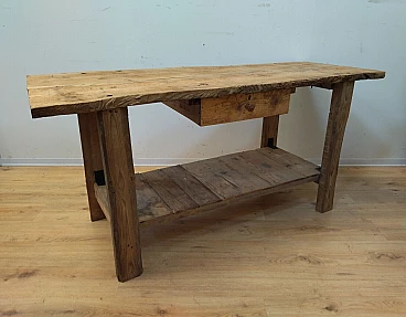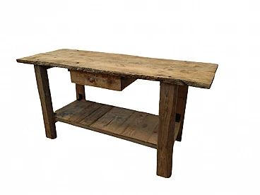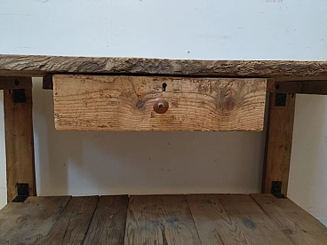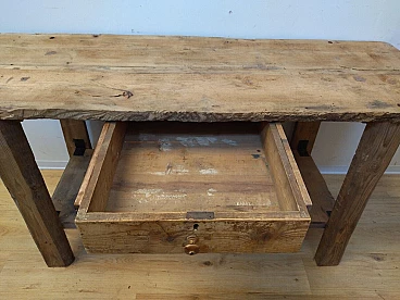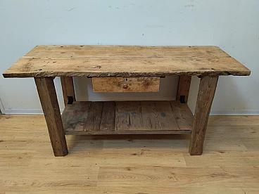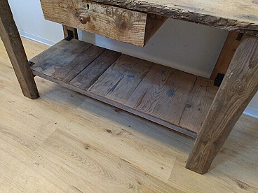 Tavolo da lavoro in larice e abete con cassetto, inizio '900