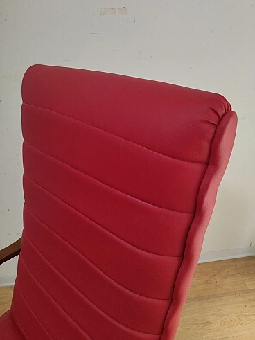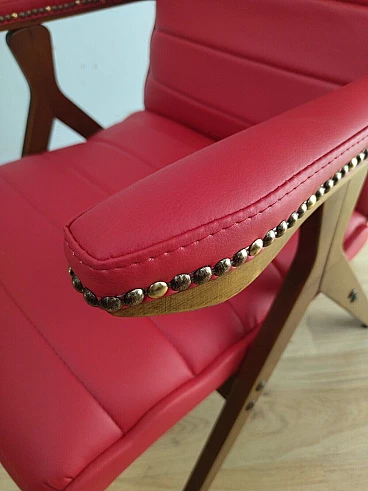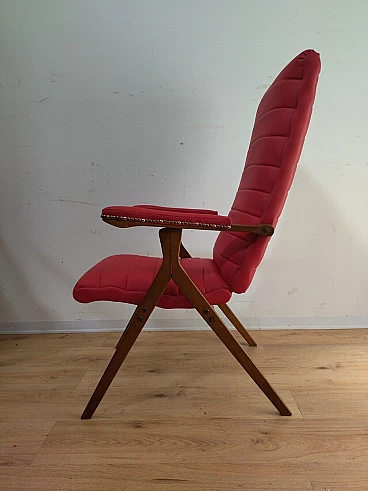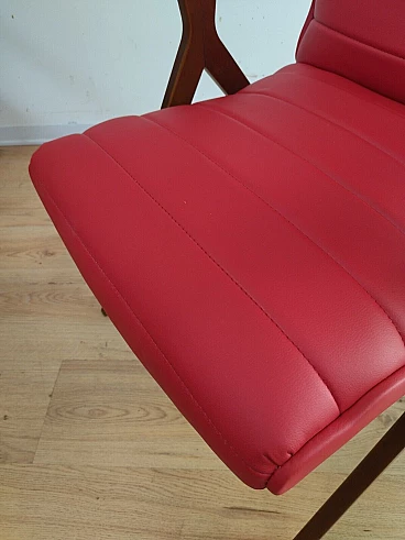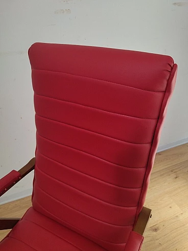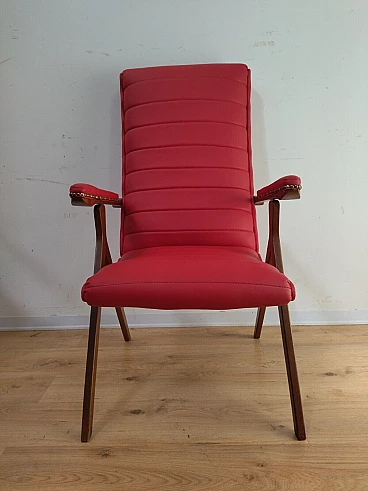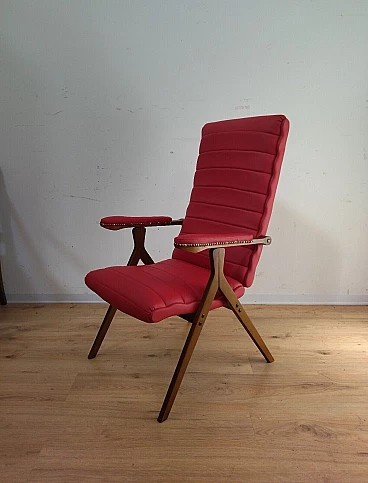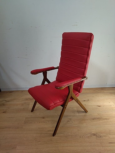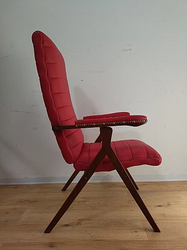 Poltrona reclinabile in faggio massello ed ecopelle rossa, anni '50