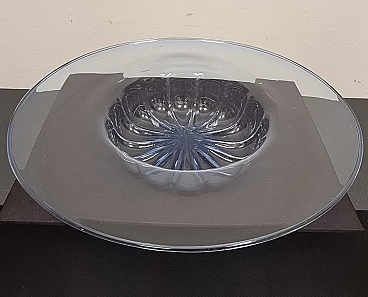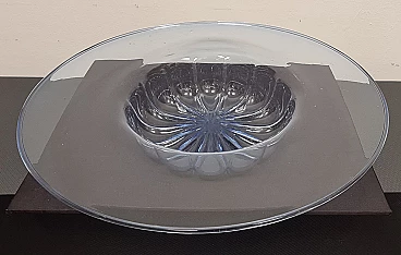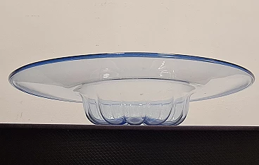 Elegante e delicato, questo piatto fa parte della storia del vetro di Murano. In vetro trasparente azzurro/blu con fondo baccellato.