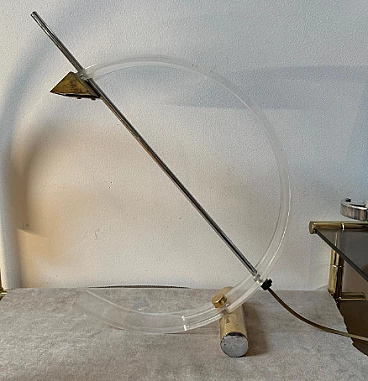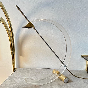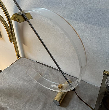Lampada da tavolo ad arco in plexiglass e metallo, anni '80