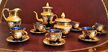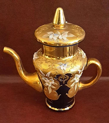 Servizio da caffè in vetro di Murano blu cobalto e dorato