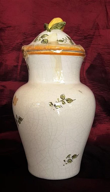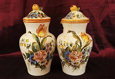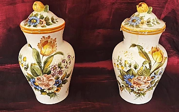 Coppia di vasi con coperchio in ceramica di Bassano dipinti a mano