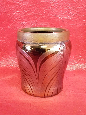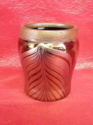 Vaso stile Tiffany in vetro Favrile e ottone