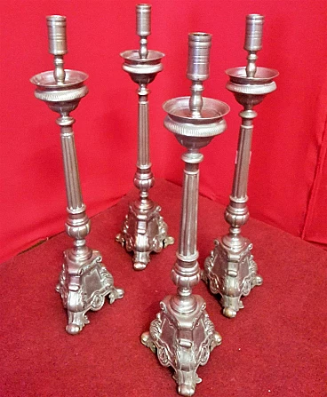 4 Candelieri in bronzo argentato, seconda metà dell'800