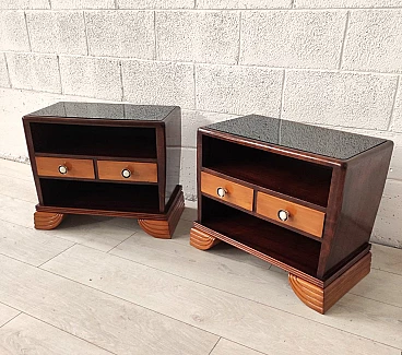Coppia di Comodini in legno di mogano e di ciliego, anni '30