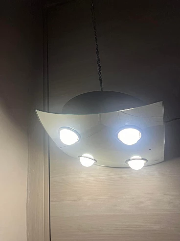 Lampada da soffitto in metallo cromato con 4 luci, anni '70