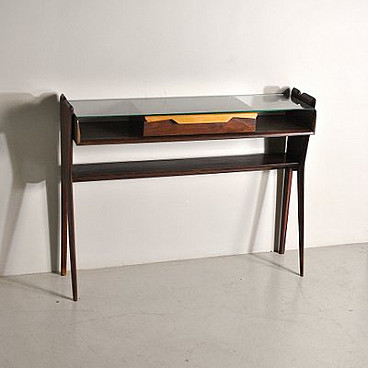 Consolle in noce scuro in stile Ico Parisi, anni '50