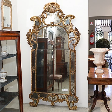 Specchio in legno dorato con cimelio a conchiglia, '800