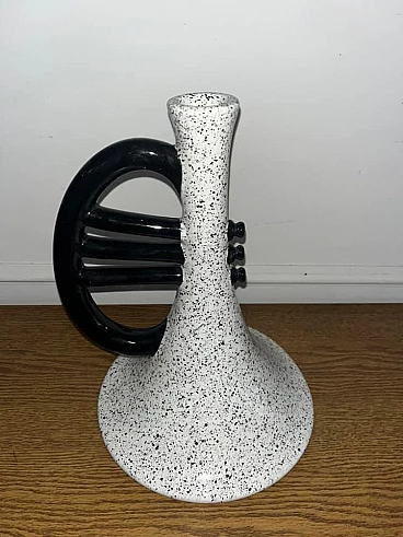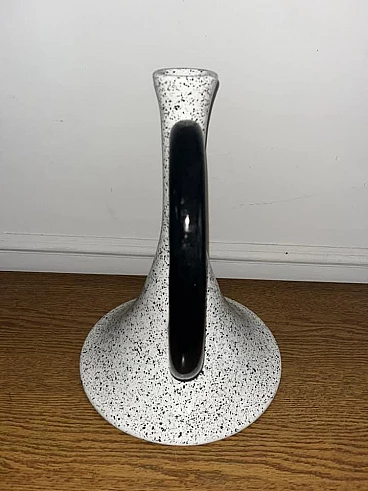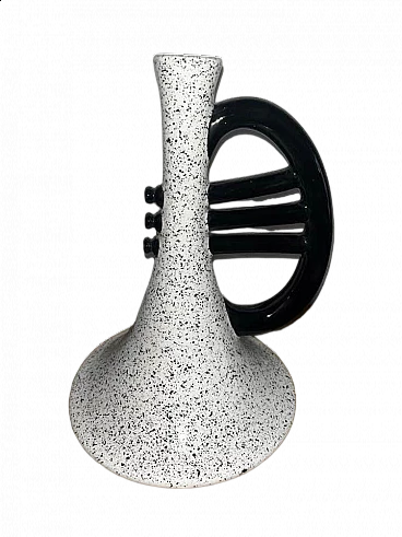 Vaso in ceramica bianca e nera a forma di tromba, anni '50