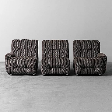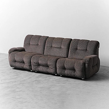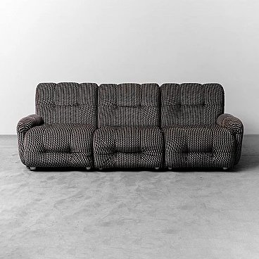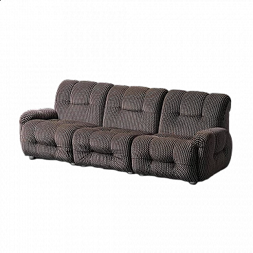 Divano modulare 3 posti in tessuto bianco & nero, anni '70