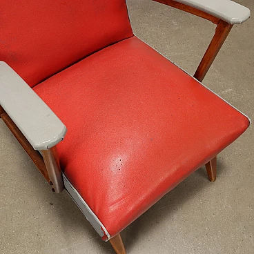 Coppia di poltrone in faggio tinto e skai, anni '50
