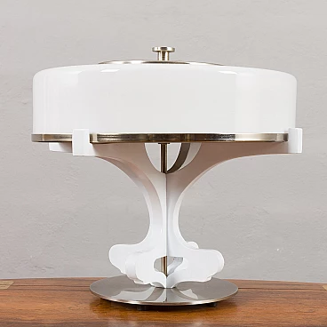 Lampada da tavolo in vetro di Murano, legno e acciaio, anni '70