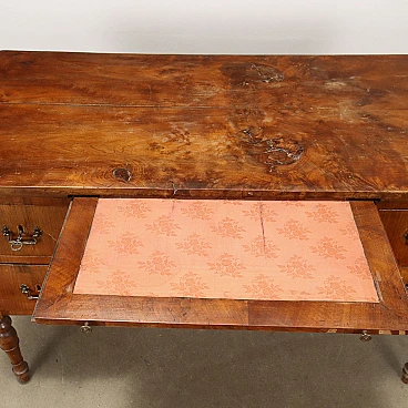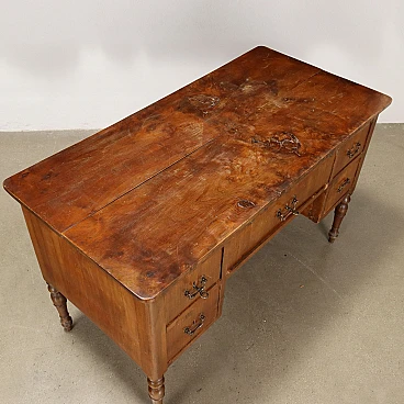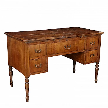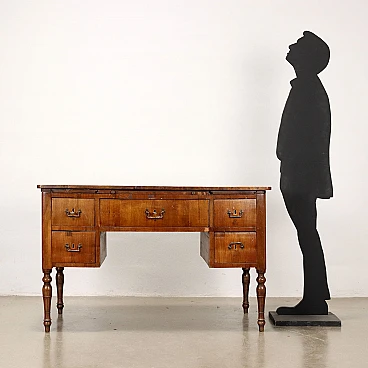 Scrivania in noce con 5 cassetti e interni in abete, '800