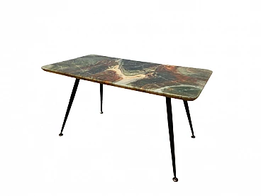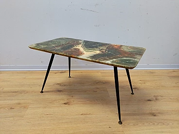 Tavolino in ferro con piano in materiale plastico, anni '50
