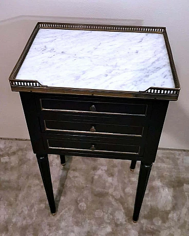 Comodino in legno e marmo di Carrara in stile Napoleone III, fine '800
