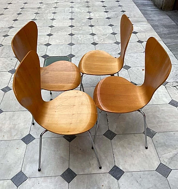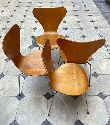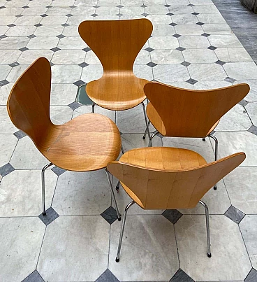 4 Sedie Serie 7 in legno di Arne Jacobsen per Fritz Hansen, 1992