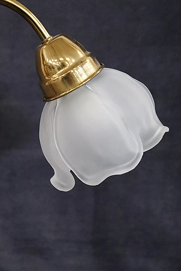 Lampada da tavolo in vetro e ottone dorato, anni '80