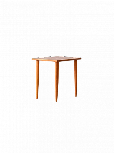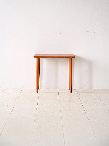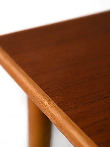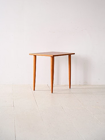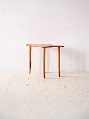 Tavolino di manifattura nordica anni ‘60. Un pezzo d’arredo sobrio ed elegante che ben si adatta a diversi contesti e stili. Costituito da un piano rettangolare in teak e da lunghe gambe di forma conica che slanciano la figura. Grazie alle dimensioni contenute può essere utilizzato anche come comodino o come mobiletto d’appoggio per l’ingresso. Donerà carattere e calore alla stanza. Buone condizioni, è stato effettuato un restauro conservativo con prodotti di origine naturale. Potrebbe presentare dei segni del tempo. Per piacere presta attenzione alle fotografie.