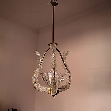 Ritorna all'eleganza del glamour degli anni '40 con questo lampadario Decò firmato Ercole Barovier, un'icona del design italiano che incarna il lusso e lo stile dell'epoca. Con i suoi tre bracci in vetro di Murano e ottone, questo lampadario è un vero capolavoro di artigianato e design. Le dimensioni di 80x80x100 cm conferiscono al lampadario una presenza imponente, perfetta per diventare il punto focale di qualsiasi ambiente. I dettagli curati e la qualità dei materiali conferiscono un'aura di raffinatezza e prestigio, mentre il design Decò aggiunge un tocco di fascino vintage. Aggiungi un tocco di eleganza senza tempo alla tua casa o al tuo spazio con questo lampadario Decò di Ercole Barovier, un pezzo unico che trasmette l'essenza dell'artigianato italiano e l'eleganza degli anni d'oro del design.