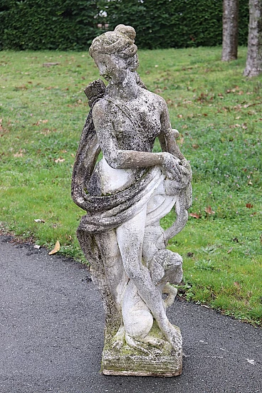 Bella e raffinata statua da giardino, circa 1920. La statua è stata realizzata in materiale misto cemento, polvere di marmo e graniglia di pietra. Statua bella e maestosa. Una bella rappresentazione di Diana, dea della caccia, con arco e frecce e il suo fedele cane ai piedi. Mostra i segni del passare del tempo e del tempo trascorso all'aperto. Questa statua è perfetta per abbellire un giardino importante. Vi consigliamo comunque di guardare bene in dettaglio tutte le foto allegate. Proposta ad un ottimo prezzo, comunque trattabile, vi invitiamo ad inviarci le vostre proposte di acquisto, le valuteremo con piacere.