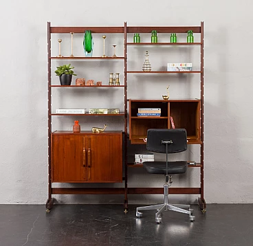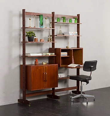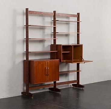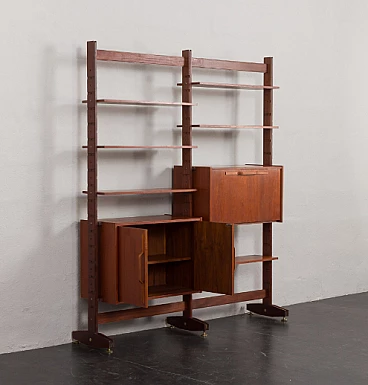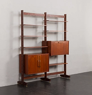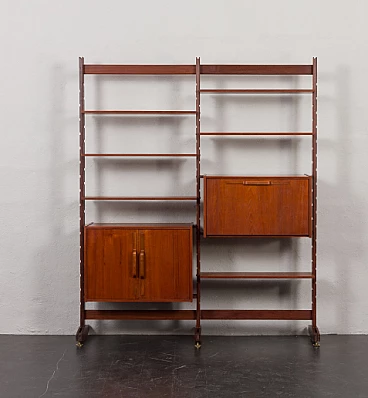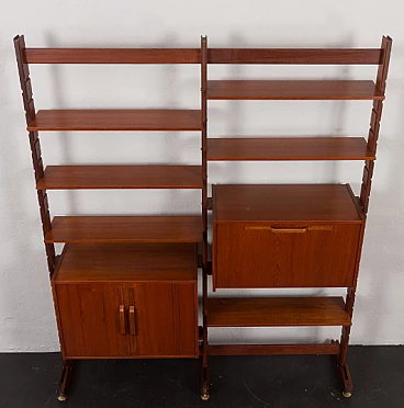 Libreria a due campate in teak e ottone di Ico Parisi, anni '60